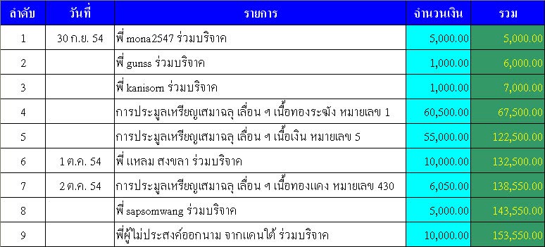 สวัสดีครับพี่ ๆ ทุกท่าน วันนี้ขออัเดต ยอดเงินบริจาคช่วยเหลือผู้ประสบอุทกภัยน้ำท่วม กับ ชมรมพุทธคูณสยาม โครงการ 2 ซึ่งเป็นยอดที่ได้รับจนถึงเวลา 17.00 น. ของวันที่ 2 ต.ค.2554 นะครับ