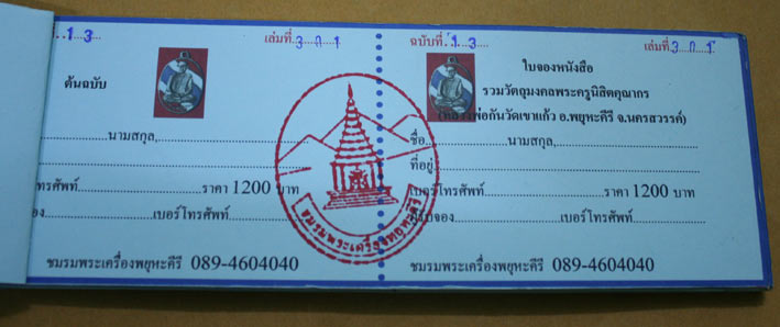 นังสือรวมวัตถุมงคลพระครูนิสิตคุณากร(หลวงพ่อกันวัดเขาแก้ว)**พิมพ์สี350หน้าเย็บกี่หนังสือพิมพ์ จำนวน 2,000 เล่ม มีรันนัมเบอร์ รับหนังสือ ในวันที่5 กุมภาพันธ์ 2555 สั่งจองได้แล้วตั้งแต่วันนี้เป็นต้นไป สนใจสั่งจองได้ที่ โทร...0865366909 สั่งจองได้ในราคา 1,200 บาท(ราคาสันปก1,900บาท) ค่าจัดส่งทั่วประเทศ ต่อเล่ม50 บาท