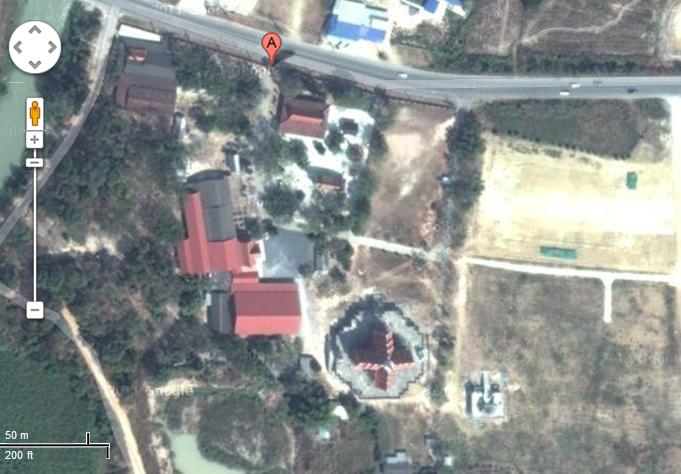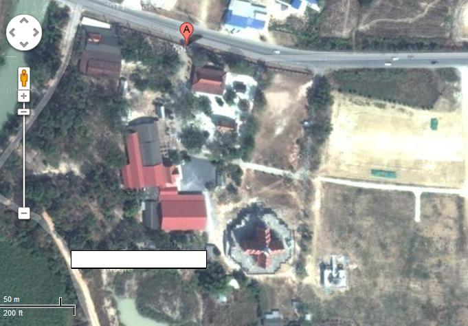 ภาพที่สองเป็นเป็นบริเวณ(แถบสีขาว)ที่นำดินมาถมเพื่อขยายพื้นที่วัด |