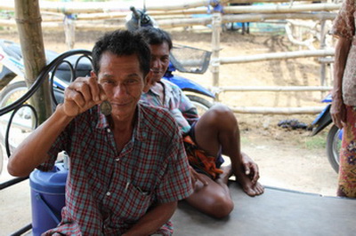 เมื่อหลายสัปดาห์ก่อน ได้มีโอกาสไปกราบพระอาจารย์จิ ที่วัดหนองหว้า ได้พบชาวบ้านกลุ่มหนึ่งคุยกันเรื่องประสบการณ์เหรียญเจริญพร ของพระอาจารย์จิ ด้วยความอยากรู้ข้อมูลจึงเข้าไปถาม ก็ได้ความว่า มีลุงคนหนึ่งปีนขึ้นไปตัดลูกตาลแล้วพลัดตกลงมา แต่ไม่เป็นอะไรเลย ในตัวมีเหรียญเจริญพร พระอาจารย์จิเพียงเหรียญเดียวเท่านั้น ผมเลยขอให้คนที่เล่าข้อมูลช่วยพาไปหาลุงแกหน่อย ชาวบ้านที่คุยอยู่ดว้ยก็บอกว่า ใครๆก็รู้จักลุงเพราะเรื่องนี้เขารู้กันทั้งตำบลหนองขนานแหละ ผมก็ได้ไปพบลุงที่ลานประมูลวัว ซึ่งวันนั้นกำลังมีการซื้อขายวัวกันอยู่ เมื่อไปถึงผมก็เข้าไปแนะนำตัวกับลุง และถามลุงถึงเหรียญเจริญพรที่มีประสบการณ์ พอลุงได้ยินดังนั้น ลุงก็รีบบอกว่าไม่มี ทำเอาผมงงไปพักใหญ่ พอดีผู้ชว่ยมานะซึ่งเป็นผู้ช่วยผู้ใหญ่บ้าน เดินเข้ามาพอดีหลังจากแกคุยกับคนที่พาผมมา ผู้ช่วยมานะบอกผมว่านับแต่ลุงแกตกต้นตาลลงมาแล้วไม่เป็นอะไร ลุงแกหวงเหรียญนี้มาก กลัวคนจะมาขอบูชาไป ผมจึงถึงบางอ้อ จึงบอกลุงไปว่าผมแค่อยากมาดูเหรียญของลุงและสอบถามข้อมูลเท่านั้นเอง ลุงแกจึงยอมให้ข้อมูลและเดินกลับบ้านไปเอาเหรียญมาให้ดู ซึ่งจากการถามข้อมูลจากลุงก็ได้ความว่า ลุงชื่อว่าสมบุญ แก้วสะอาด อยู่บ้านเลขที่ 58 หมู่ 6 ต.หนองขนาน อ.เมือง จ.เพชรบุรี มีอาชีพทำนา และเก็บลูกตาล น้ำตาลขาย วันที่เกิดเหตุเป็นวันที่ 20 เม.ย 54:ซึ่งวันนั้นลุงสมบุญ ก็ไปทำนาตามปกติ หลังจากเสร็จจากทำนา ลุงสมบุญก็ป๊นขึ้นไปเก็บลูกตาล บนต้นตาลต้นหนึ่งสูงประมาณ 18 เมตรเห็นจะได้ ลุงสมบุญเล่าว่าแกก็ปีนขึ้นเป็นประจำแต่วันนั้นแกพลาดเกิดลื่นตกลงมา ลุงแกก็พยายามจะยึดเกาะลูกตาลไว้แต่เกาะไม่อยู่ ลุงรู้สึกว่ากำลังตกลงไป ลุงจึงจับไปที่เหรียญเจริญพรของ พระอาจารย์จิซึ่งลุงสมบุญได้รับแจกจากพระอาจารย์จิมา แล้วลุงแกพกไว้ที่ผ้าขาวม้าที่ลุงคาดไว้ที่เอวไว้เพียงเหรียญเดียว นึกถึงพระอาจารย์จิให้ช่วยด้วย ลุงเล่าว่ารู้สึกล่องลอย ตัวเบาหวิว แล้วก็ไม่รู้สึกอะไรอีกเลย มารู้สึกตัวอีกที่ก็นอนอยู่ที่ใต้ต้นตาลแล้ว รู้สึกมึนๆงงๆอยู่ หลังจากหายมึนงง ลุงก็ลุกขึ้นยืน รู้สึกเคร็ดขัดยอกนิดหน่อยแต่ไม่มากนัก จากนั้นลุงก็รีบควานหาเหรียญเจริญพรที่ตกหายไป หลังจากตกลงมา เมื่อเจอแล้วลุงก็เดินไปล้างตัวที่หนองน้ำ