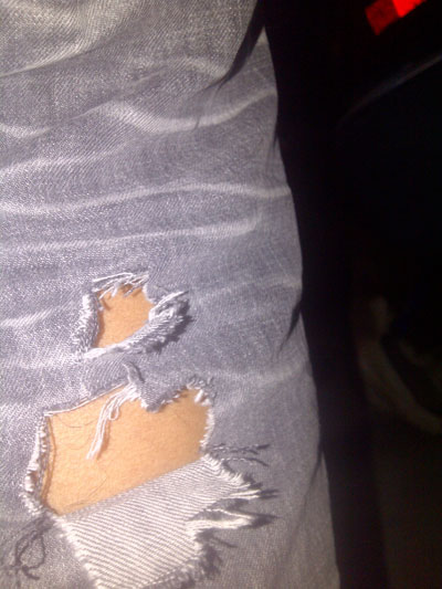 ผมดูที่น่องก็เห็นว่ากางเกงขาด แต่ไม่เข้า ไม่มีแม้แต่รอยถลอกครับ