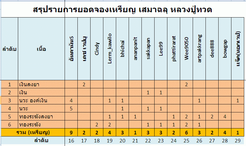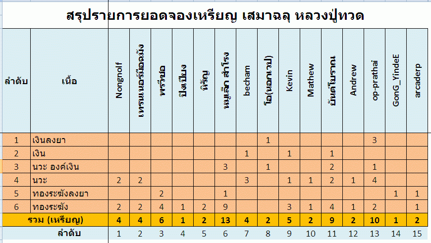 สรุปยอดจองเหรียญ หลวงปู่ทวด พ่อท่านพรหม ที่จองกับคุณซุ่มโคราช