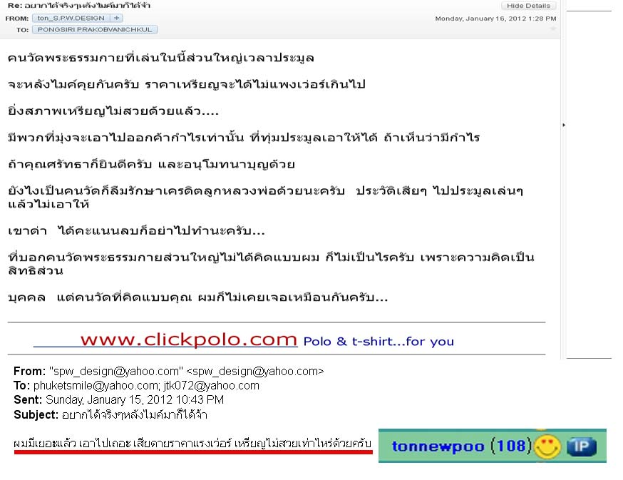 อย่างสมาชิกท่านนึ่ง แข่งประมูลพระกับผม จนในที่สุดผมก็สู้ราคาสุดท้าย พอปิดประมูลก็ได้รับmailมาแบบนี้ก็ไม่เข้าใจว่าเขาจะสื่ออะไรกับผม