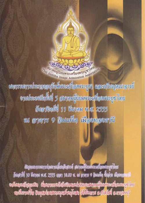 ในวันเสาร์และอาทิตย์ ที่ 10 - 11 มี.ค.2555 ทางสมาคมผู้นิยมพระเครื่องพระบูชาไทย ได้จัดให้มีการประกวดพระเครื่องพระบูชา ขึ้นที่อาคาร 9 อิมแพ็ค เมืองทองธานี