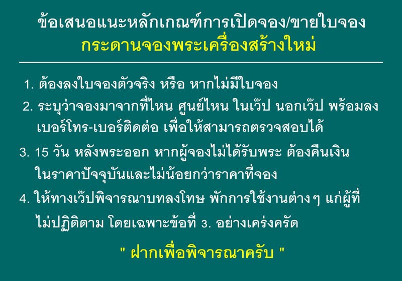 โดยเฉพาะการขายใบจอง อยากให้ทางเว๊ปพิจารณาหาหลักเกณฑ์ต่างๆ ให้รัดกุมยิ่งขึ้น