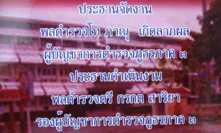 โบชัวร์ออกอย่างเป็นทางการแล้วครับ เริ่มแจกกันที่หอประชุมกองทัพเรือเมื่อวันอาทิตย์ที่ผ่านมาก็เลยโพสต์มาให้ชมกัน... เป็นสนามที่ 2 ของพระในชุดสร้างบารมี 54 ของหลวงปู่บัวได้เข้าสู่เวทีงานประกวดของสมาคมคราวนี้ที่โคราชครับ ท่านผู้บัญชาการตำรวจภูธรภาค 3 พลตำรวจโท ภาณุ เกิดลาภผล เป็นประธานในการจัดงานครับ |