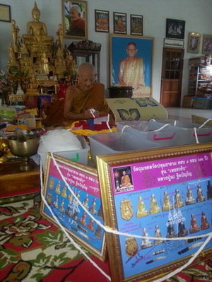 เริ่มจาก หลวงพ่อคง วัดเขากลิ้ง จังหวัดเพชรบุรี หลวงพ่อพรหม วัดพลานุภาพ จังหวัดปัตตานี หลวงพ่อท่านเขียว วัดห้วยเงาะ จังหวัดปัตตานี หลวงพ่อแก้ว วัดคลองเรียน จังหวัดสงขลา อายุ100 ปี หลวงพ่อท่านคล้อย วัดภูเขาทอง จังหวัดพัทลุง หลวงพ่อท่านไข่ วัดลำนาว จังหวัดนครศรีธรรมราช หลวงพ่อท่านท้วม วัดศรีสุวรรณ จังหวัดสุราฏธานี หลวงพ่อท่านเจียม วัดน้ำตก จังหวัดชุมพรอายุ103 ปี หลวงพ่อบุญมา วัดถ้ำโพงพาง จังหวัดชุมพร หลังจากนี้ก้อจะเดินสายตระเวนปลุกเสกไปสายอีสานและสายเหนือครับ เช่นหลวงปู๋หงษ์ หลวงปู่คำบุ และเกจิอีกมากมายครับ