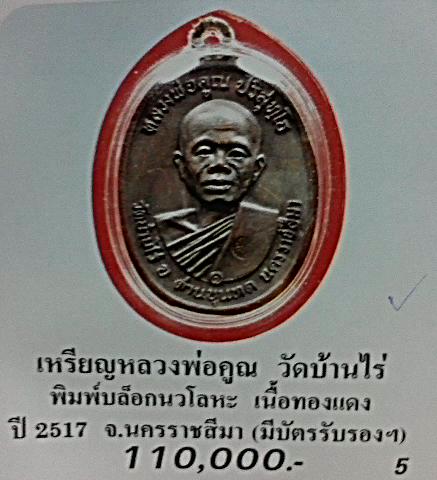 หนังสือการันตีฉบับเดือนสิงหาคม หน้ารองปกหลังลงราคาไว้ที่ 110000 บาท ไม่ว่าจะปล่อยได้หรือไม่ได้เชื่อว่าอีกไม่นานปี 17 จะต้องมีการปรับฐานราคาขึ้นจากราคาปัจจุบันไม่มาก็น้อยแน่ๆเลย สมแล้วที่เป็นเหรียญอนาคตไกลอันดับที่ 2 ของบอย ท่าพระจันทร์ จัดอันดับเอาไว้อันดับ1คือเหรียญเลื่อน ลพ.ทวด ปี08 ซึ่งราคาก็วิ่งไปมากแล้วครับ  |
