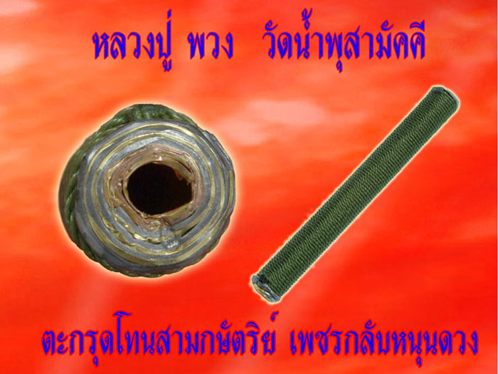 และมาถึงตะกรุดที่ถือเป็นสุดยอดตะกรุดยุคใหม่คือ "ตะกรุดโทนสามกษัตริย์ เพชรกลับหนุนดวง หลวงปู่พวง วัดน้ำพุ จ.เพชรบูรณ์" ซึ่งผมได้มีโอกาสนำให้ทุกท่านได้บูชาในราคาวัดบวกค่าจัดส่งหลายสิบดอกนั้น ขอบอกว่านอกจากจะดูสวยงาม เข้มขลัง และสืบทอดตำนานตะกรุดของหลวงพ่อทบอันลือลั่นแล้ว พลังพุทธคุณนั้นแรงมากยิ่งกว่าตะกรุด 2 ดอกที่ผมเอ่ยมาข้างต้นอีกครับ เพราะเมื่อผมได้เห็นเป็นครั้งแรก ผมก็รู้สึกชอบทันที เกิดเมตตา รู้สึกดีมากๆ ผมจึงหยิบขึ้นมาถือไว้แบบธรรมดา ยังไม่ทันได้จับหัวท้ายตามตำรับการลองตะกรุด ผมถึงกับขนลุก รู้สึกถึงพลังที่หนักหน่วง หนักแน่น แต่เย็นสบายแผ่ออกมาจากตะกรุด โอยยยย ขนาดยังไม่ใช้นิ้วจับหัวท้ายนะครับ