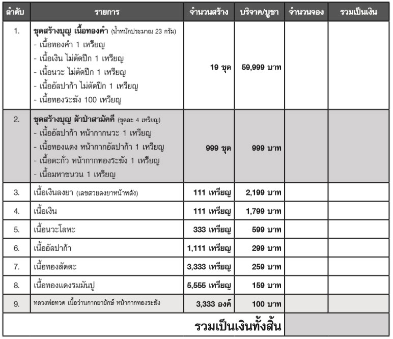 ชุดที่ 1. ชุดสร้างบุญ 1 ชุด + สัตตะ 1 + ทองแดง 1 : 1520.01