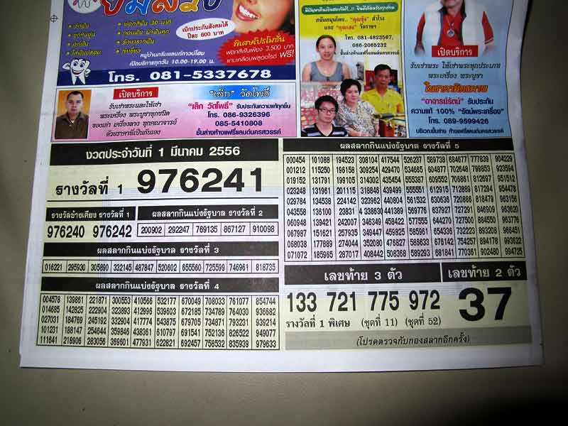 เป็นประจำทุกงวด ซื้อเรียงเบอร์เพราะซื้อล็อตเตอร์เสี่ยงโชคเป็นประจำ กลับจากกรุงเทพ แวะผ่านไปแถวสี่แยกพิษณุโลก ซื้อเรียงเบอร์มาตรวจ เผื่องวดนี้จะมีโชคกับเขาบ้าง (ถูกกินเหมือนเคย) แต่บังเอิญไปเจอพาดหัวข่าวบนหน้าหนังสือพิมพ์ที่ซื้อมา เลยนำมาฝากเพื่อนๆครับ  |