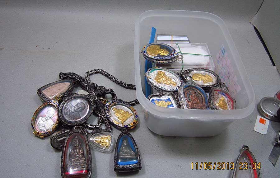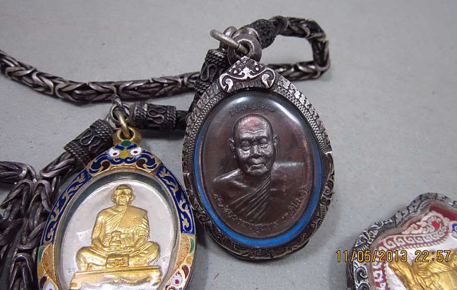 ..วันนี่ตั้งใจจะเปลี่ยนเหรียญหลวงพ่อสุนทรเนื้อมหาชนวนหลังแบบที่พี่พิภพแจกให้มาขึ้นคอแทนหลวงพ่อเงิน(รุ่นกองทุน 53 เนื้อเมฆสิทธิ์)และจะเอาเหรียญจอบเล็กใส่แทนเนื้อเมฆสิทธิ์ เพราะเป็นรุ่นเดียวกัน..ผมชอบแขวนพระหลายองค์ครับ..ที่คอ 7 องค์..(ในกระเป๋าไม่นับ)