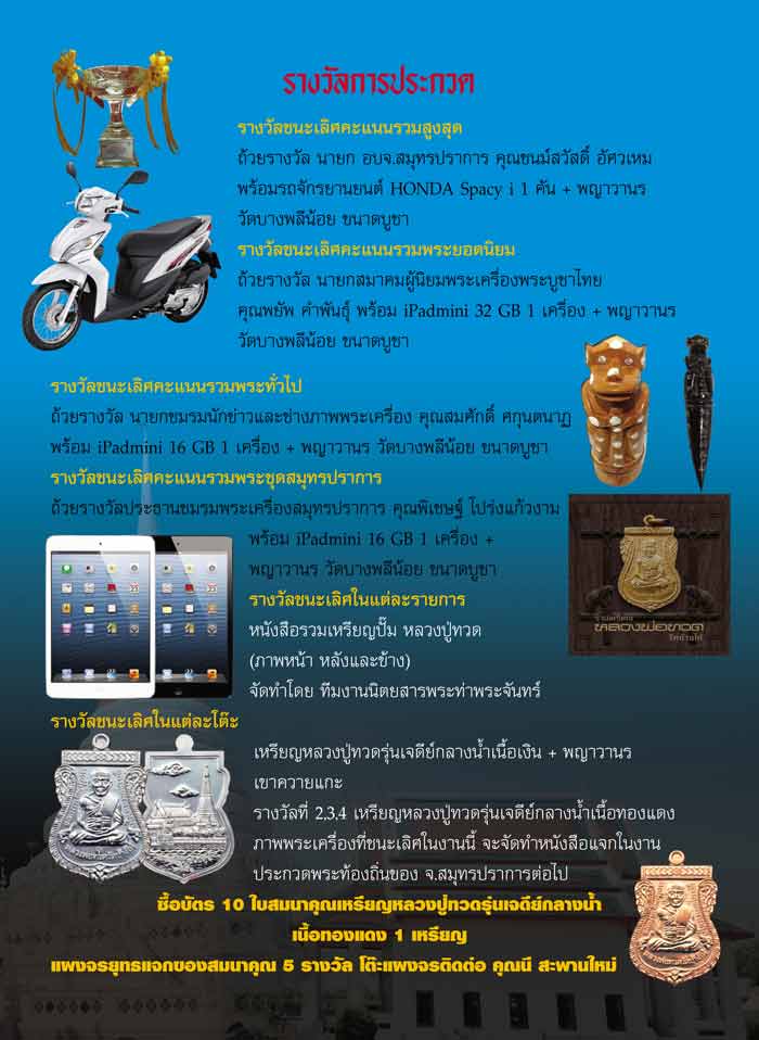 วันที่ 8 ก.ย.2556 องค์การบริหารส่วนจังหวัดสมุทรปราการ และชมรมพระเครื่องสมุทรปราการ ได้จัดการประกวดพระเครื่อง พระบูชา ณ ไบเทคบางนา