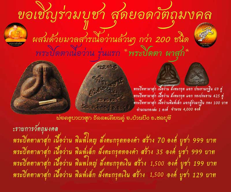 1.พระปิดตานะผาสุก พิมพ์ใหญ่ ตะกรุดทองคำ สร้าง 70 องค์ 999 บาท