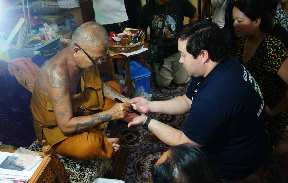 " ใครมีปัญหา ค้าขาย การเงินไม่คล่อง ความรักไม่ราบรื่น ขาดเสน่ห์ " ขอเชิญมารับการ ลงน้ำมันสาริกา นะหน้าทอง สาลิกาลิ้นทอง และลงเส้นวาสนา และพิีธีสักยันต์ ตามตำรับ ภาษาครินถ์ ทั้งน้ำมัน และหมึกดำ