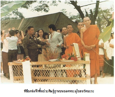 เมื่อเดินทางถึงบริเวณวัดมะระพระอริยะเจ้าทั้งสองได้พบกัน หลวงพ่อก้มลงกราบสมเด็จพระญาณสังวรแล้ว ได้รับการอัญเชิญจากพระเดชพระคุณเจ้าให้นั่งคู่กัน และได้ร่วมประกอบพิธียกช่อฟ้าจนเสร็จสิ้น ท่ามกลางญาติโยมและลูกศิษย์ที่ได้เข้าร่วมกุศลกรรมครั้งนี้