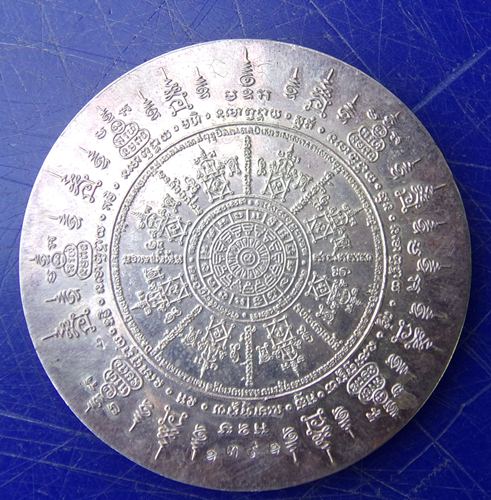 ด้านหลัง เป็นยันต์มหามงกุฎ พระพุทธเจ้า หรือ ศาลาเรือนเตี้ย