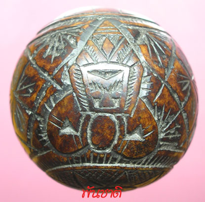 เล่นเครื่องรางจะพบอะไรแปลกๆแบบนี้ครับ อยากชุดนี้ผมไม่เคยเห็นครับ เป็นลูกมะพร้าวลูกเล็กๆ ทั้งๆลูกขนาดเส้นผ่าศูนย์กลาง 1 นิ้ว สั่นดูจะมีเสียงดังกึกๆ อาจจะเป็นเนื้อหรือจาวมะพร้าวแห้งอยู่ข้างในก็เป็นได้ครับ