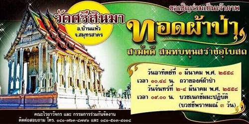 สมทบทุนสร้างอุโบสถ วัดศรีสินมา อ.บ้านแพ้ว จ.สมุทรสาคร
