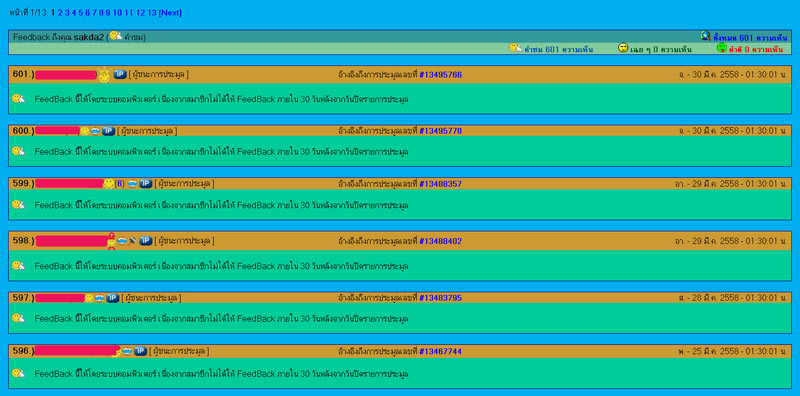 แล้วผมก็รอ Feeback กลับจากผู้ซื้อบ้างส่วนมากจะ Feedback ตอบกลับให้ด้วยดีครับ แต่วันนี้เข้าไปดูตกใจครับได้โดยคอมฯ 6 คำชมรวด แต่ก็ยังดีครับ