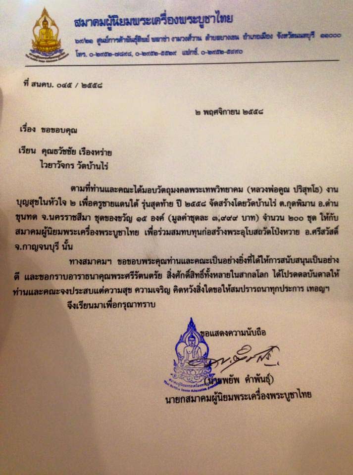 และกรรมการสมาคมผู้นิยมพระเครื่องพระบูชาไทย ที่ให้ความเมตตากับคณะทำงานร่วมบุญกับหลวงพ่อคูณ วัดบ้านไร่ มา ณ ที่นี้ด้วยครับ