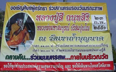 ขอเรียนเชิญพี่ๆทุกท่าน มาร่วมงานทำบุญประจำปี ครบรอบวันมรณะภาพ หลวงปู่สี ณ วัดเขาถ้ำบุญนาค ในวัยที่ 23.กพ.51 พร้อมกับวันแรก ของการจำหน่อยโปรเตอร์ รวมวัตถมงของหลวงปู่สีครับ