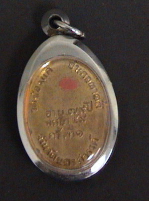 เรื่องถัดมา จากหนังสือข้างต้น ถ้าเป็นพระผง ก็มีรอยบิ่น แล้วถ้าเป็นพระเนื้อโลหะละจะเป็นอย่าง ไม่มีหนังสือเล่มใดบอก ก็ไม่แปลก ก็เขาลอกการบ้านกันมา แล้วคนต้นฉบับก็ถามลูกศิษย์สายกรุงเทพฯที่รู้งูๆปลาๆ ไม่ทราบรายละเอียดขั้นตอนของหลวงพ่อ ถ้าเรามาพิจารณาขั้นตอนลงธาตุดิน จะมีการเจิมแป้งดินสอพอ เสร็จแล้วก็ลงธาตุน้ำ โดยการพรมพระพุทธมนต์ ตามด้วยการปิดผนึก ราดน้ำพระพุทธมนต์ แป้งดินสอพอ ที่เจิมไว้ ก็ละลายไปกับน้ำพระพุทธมนต์ แทรกไปตามเนื้อโลหะ อย่างตัวอย่างที่ผมลงให้ดูเปรียบเทียบนะครับ (ลองดูตัวอย่างรุ่น 1 บล็อก 2 หน้าหนุ่มปี 08ที่ผมลงให้ดูเป็นตัวอย่างครับ) บางคนไม่รู้นึกว่าพระใช้ ล้างผงนั้นออก ไปอย่างน่าเสียดายครับ ทีนี้ถ้าท่านเช่าพระของหลวงพ่อถ้าเจอคราบร่องรอยพวกนี้ อย่าเอาออกนะครับ ถ้าเซียนที่ไม่รู้เรื่องแล้วบอกพระใช้ (อย่างที่ผมเคยเจอ) ก็อย่าบอกเขานะครับ เราจะได้เช่าพระหลวงพ่อในราคาที่ถูกดีครับ