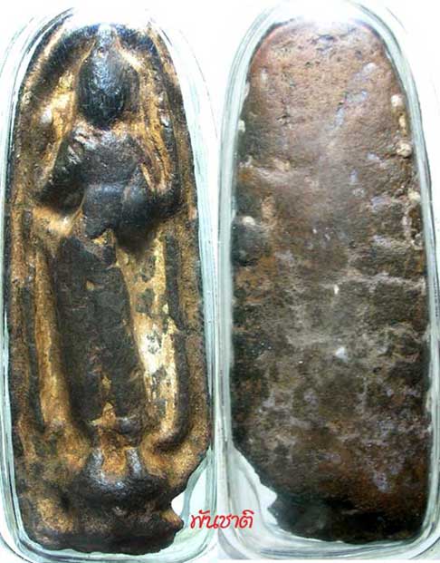 องค์นี้เจ้าของเดิมถักลวดห้อยคอใช้อยู่ก่อนแล้วครับ สังเกตุพบว่ามีรอยลวดถักให้เห็นด้านหลัง เสียนิดเดียวตรงมุมล่างด้านขวามือเรากระเทาะเล็กน้อยครับ สภาพนี้ค่านิยมเช่าหาอยู่หลักหมื่นต้นๆครับ |