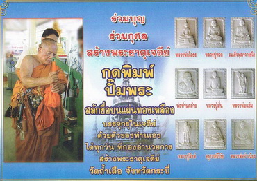 **ร่วมสร้างพระธาตุเจดีย์ ด้วยการกดพิมพ์ ปั๊มพระ พร้อมสลักชื่อของท่านด้วยตนเอง เพื่อนำบรรจุกรุในเจดีย์ ณ วัดถ้ำเสือ จ.กระบี่