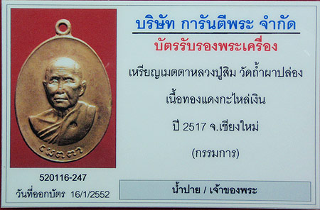 ....ไม่คิดเลยครับว่าจะมีท่านสมาชิกให้ความสนใจจนมีผู้เข้าชมเป็นร้อย แต่อย่างว่าครับพระสวยๆก็ต้องมีเจ้าของอย่างแท้จริง ปิดประมูลไปที่3xxxx ผมต้องขอแสดงความยินดี กับเจ้าของท่านใหม่ด้วยครับ มีโอกาสคงได้พบกันอีกในครั้งต่อไปครับ......น้ำปาย....ปล.ท่านใดที่ชื่นชอบหลวงปู่สิมผมมีอีกหนึ่งเหรียญ ภูมิใจเสนออีกแล้วครับท่าน...... |