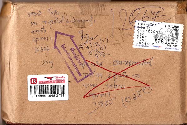 ต้องขอโทษคุณนริศค่ะ ที่ไม่ได้แจ้งเลข พัสดุให้ทราบตั้งแต่แรก เพราะคิดว่า ยังไงมันก็ต้องถึงแน่ ๆ ก็ลงทะเบียนนี่นา ( รายการอื่นก็ถึงหมด )