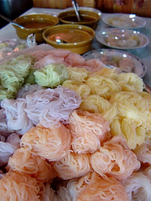 สำหรับคุณค่าจากขนมจีนนั้น หลักๆเลยก็คือจะได้คาร์โบไฮเดรตจากเส้นขนมจีน ส่วนคุณค่าอื่นๆนั้นก็มาจากน้ำยาที่เราเลือกกิน ไม่ว่าจะเป็นน้ำยาป่า น้ำยากะทิ น้ำยาแกงเขียวหวาน น้ำ ฯลฯ แต่ต้องไม่ลืมกินผักที่เป็นเครื่องเคียงให้เยอะๆด้วย รับรองว่าได้สารอาหารครบ 5 หมู่แน่นอน |