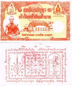 เคยไปทำบุญทอดผ้าป่าที่วัดหน้าต่างนอกเกือบ ๑๐ ปี มาแล้ว หลวงพ่อแม้น ท่านกรุณาให้ธนบัตรขวัญถุงมาหลายใบ อยากแบ่งให้เพื่อนๆไปบูชากันบ้าง มีให้ ๕ ใบ ครับ