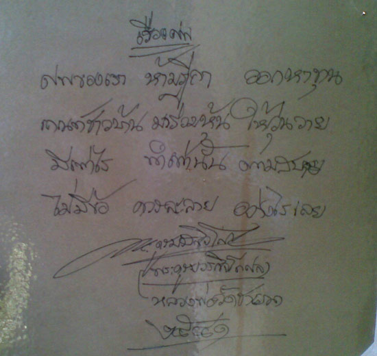 กระดาษหนึ่งแผ่นที่หลวงพ่อเขียนไว้เหมือนกันทั้งด้านหน้าและด้านหลัง