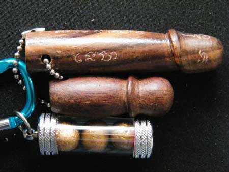 รูปล่าง ห้อยรวมกับตะกรุด ที่ท่านผอ.ครูน้อยได้เมตตาและกรุณาให้มาใช้ คือตะกรุด ไม้คูณ ที่หลวงพ่อสาคร ปลุกเสกนานที่สุดในโลก 12 ปี และอีกปลัดหนึ่งของหลวงพ่อสิน วัดละหารใหญ่ ที่ผมบูชามา เป็นไม้พยุง ตัวยาว บูชามาแล้ว ขอความเมตตาจากหลวงพ่อสิน ส่งให้ ตามที่เคยลงภาพให้ชมแล้ว ตอนไปพักผ่อนที่สัตหีบ ครับ ก็คงต้องใช้ตลอด โดยเฉพาะ อันของท่านครูน้อย ท่านบอกว่าให้มาใช้ (ไม่ใช่ให้มาเก็บ) ครับผม  |