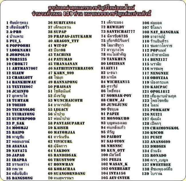 จำนวน 139 ท่าน หมายเลขของขวัญแต่ละท่านดังนี้