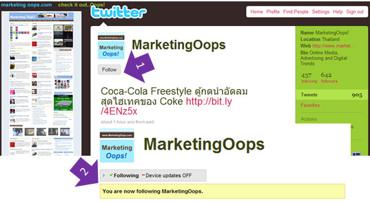 Log in เข้า Twitter ของคุณก่อน และเข้าไปที่ Twitter ของ @MarketingOops