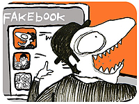 "หลายคนจึงเรียกเฟซบุ๊ควันนี้ว่า "เฟก บุ๊ค" (fake book) |