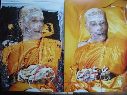 ร่างหลวงปู่ไม่ เน่าเปลื่อย ผิวหนัง เส้นผม ขนตายังอยู่ครบ เล็บหลวงปู่ก็งอกออกมาอยู่ ราวกับว่ายังหายใจอยู่ และร่างกายหลวงปู่ยังอ่อนและสามารถจับเคลื่อนไหวได้ สังเกตุ จากรูปที่ผมลงให้ชมนะครับ รูปด้านซ้ายและขวา หน้าหลวงพ่อจะ หันหน้าแตกต่างกัน |
