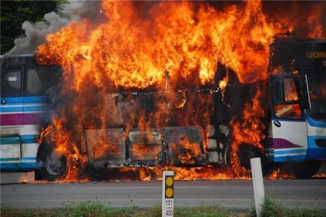 รถทัวร์ชลบุรี-สัตหีบแก๊สระเบิดไฟลุกไหม้ทั้งคัน