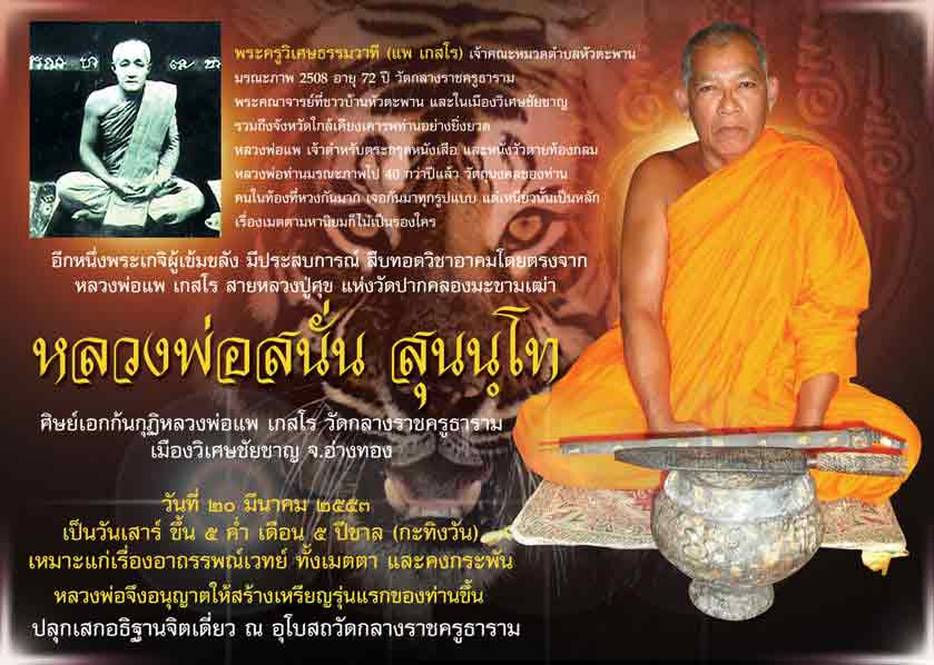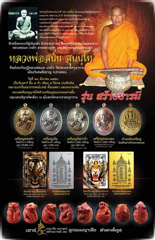 5. เหรียญชนวน (เนื้อสตางค์+เนื้อขันลงหิน) จำนวน 99 เหรียญตอกเลขไทย ๑-๙๙ เพื่อแจกให้ศูนย์รับจองหลวงพ่อสนั่น ศูนย์ละ 1 เหรียญ