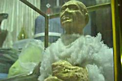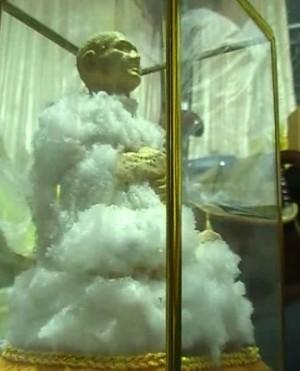 นายสหราช บอกว่า ได้บูชาต่อรูปหล่อเหมือนนี้มาจากเพื่อน และเมื่อนำมากราบไหว้บูชาได้ระยะหนึ่งก็พบว่า มีสิ่งผิดปกติเกิดขึ้นจึงได้ศึกษาค้นคว้าข้อมูลจนพบว่า ปรากฏการณ์ดังกล่าวเป็นลักษณะหนึ่งของพระธาตุเสด็จตามความเชื่อแต่สิ่งที่ เกิดขึ้นนี้เป็นลักษณะของพระธาตุอ่อนที่พบได้ตามเครื่องรางของคลังที่พระ เกจิรุ่นเก่าๆได้สร้างเอาไว้ และเป็นสิ่งของหายากเนื่องจากผู้ที่มีความเชื่อต้องการนำไปกราบไหว้บูชา เพื่อความเป็นสิริมงคล แต่ตนเองมีความเลื่อมใสศรัทธราต่อเจ้าอาวาสวัดสระสี่เหลี่ยมจึงได้นำมาถวาย ให้ดังกล่าว