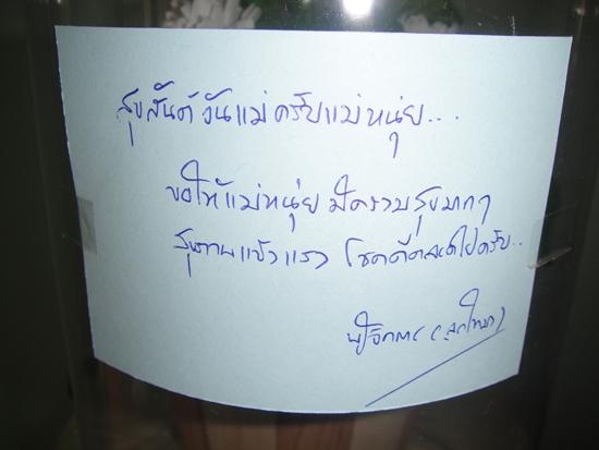 ขอแสดงความยินดีกับคุณครูหนุ่ย (ผู้ใจดี-มีแต่ให้) ที่มี อภิชาตบุตร (หมายถึง บุตรธิดาที่ดีของพ่อแม่ และมีคุณสมบัติสูงกว่าพ่อแม่) เป็นธิดา ที่น่ารักสองคน (คุณหลานเมย์ และ คุณหลานจูน) ที่ระลึกถึงพระคุณแม่ในวันแม่ .... ขอให้คุณครูหนุ่ย มีหลานยาย เป็นแก้วตาขวัญใจ เร็วๆนะครับ