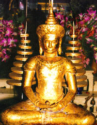 สำหรับพระที่ใช้ในประเพณี "อุ้มพระดำน้ำ" คือ "พระพุทธมหาธรรมราชา" เป็นพระพุทธรูปปางสมาธิสมัยลพบุรี หล่อด้วยทองสัมฤทธิ์ หน้าตักกว้าง ๑๓ นิ้ว สูง ๑๘ นิ้ว ไม่มีฐาน พระพักตร์กว้าง มีลักษณะเป็นเหลี่ยม พระโอษฐ์แบะ แลดูน่าเกรงขาม พระกรรณยาวเกือบจรดพระอังสา พระเศียรทรงเทริดหรือชฎา ทรงสร้อยพระศอ พาหุรัด และประคตเป็นลวดลายงดงาม ประดิษฐานบนโต๊ะบูชาในศาลาไม้ มีจำนวนสององค์ องค์จริงคือองค์บนสุด ส่วนองค์ที่อยู่ด้านล่างหล่อจำลองขึ้นใหม่เพื่อใช้ประกอบพิธีอุ้มพระดำน้ำ เนื่องจากองค์จริงหล่อด้วยสัมฤทธิ์ เมื่อนำลงดำน้ำบ่อยๆ เกรงว่าจะทำให้องค์พระหมองคล้ำหรือชำรุดเสียหาย