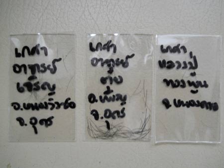 เมื่อประมาณ 15 นาที ที่ผ่านมา ผมได้รับ ซองรางวัลจาก นักทำบุญ คุณแทน/ลูกพระใส ... ชื่อ-สกุล ใหม่ ว่า "กัญจน์ณาธิป เกียรติส่งแสง" ... ภายในซอง บรรจุ เกศาของพระอาจารย์ที่มีชื่อเสียง ในจังหวัดอุดร และหนองคาย คือจาก พระอาจารย์ เจริญ ... พระอาจารย์ตุ๋ย และ หลวงปู่ทองพูน ตามลำดับครับ  |
