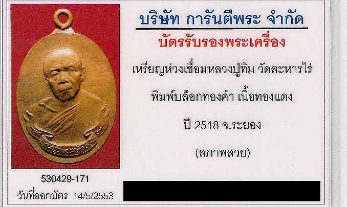 ถ้าจำไม่ผิด พระเครื่องที่มีบัตรรับรองอยู่แล้ว
