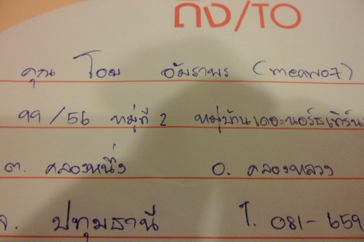 โอม อัมรามร................................. : ที่อยู่ : 99/56 หมู่ 2 หมู่บ้าน เดอะนอร์ธเทิร์นทาวน์ ต.คลองหนึ่ง อ.คลองหลวง ปทุมธานี 12120 *081 659 0792