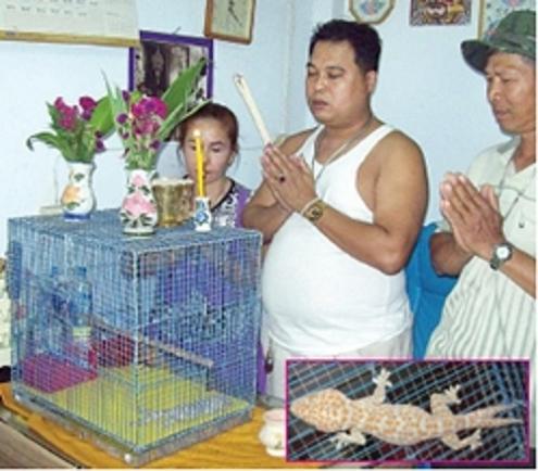 เมื่อวันที่ 28 ม.ค. ที่จ.ราชบุรี ผู้สื่อข่าวรายงานว่า มีการวิพากษ์วิจารณ์ถึงตุ๊กแก 2 หางให้โชค ที่นายณรงค์ โซเซ็ง อายุ 46 ปี และนางจิราวรรณ โซเซ็ง อายุ 45 ปี สามีภรรยาเลี้ยงไว้ในบ้านเลขที่ 109 ม.1 ต.อ่างทอง อ.เมืองราชบุรี ร่ำลือว่าให้โชคจนมีคนถูกหวยติดต่อกันถึง 4 งวด จึงเดินทางไปตรวจสอบพบชาวบ้านกำลังจุดธูปขอเลขเด็ดกับตุ๊กแก 2 หาง ที่มีความยาว 9.9 นิ้ว ซึ่งเจ้าของใส่ไว้ในกรง บริเวณหางแยกออกเป็นสองแฉก