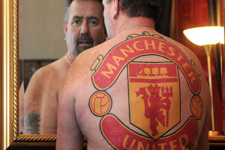 แต่ถ้าเป็นชนิดฮาร์ดคอร์ แบบสุดลิ่มทิ่มประตู ก็เช่น การสักตราสโมสรลงบนผิวหนังกันไปเลย ซึ่งหลายคนอาจเคยเห็นกันมาแล้ว แต่เชื่อว่าไม่น่าจะมีใครเกิน จอห์น ทรักเกอร์ สาวกของแมนเชสเตอร์ ยูไนเต็ด