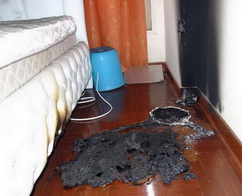 - สวิชคงจะค้างเลยทำให้กระแสไฟวิ่งผ่านเส้นลวดอยู่ตลอดจนเกิดความร้อน ประกอบกับพื้นไม้มีเลคเคอร์หรือน้ำมันชักเงาเคลือบผิวอยู่จึงทำให้เกิดเปลวไฟลุกใหม้ขึ้นได้ง่าย